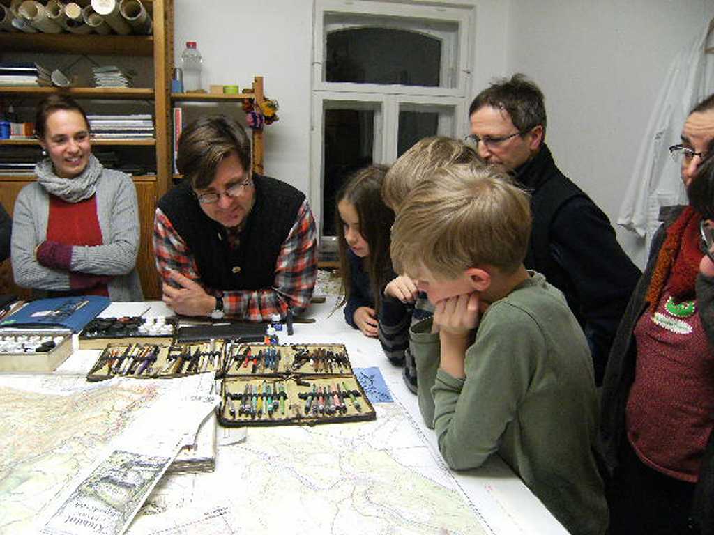 31. Januar: Wir dürfen dem Kartographen Rolf Böhm über die Schulter schauen, der viele Karten der Sächsischen Schweiz, aber auch vom Tharandter Wald und vom Zittauer Gebirge entwickelt hat (vorwiegend im Maßstab 1:10.000) .